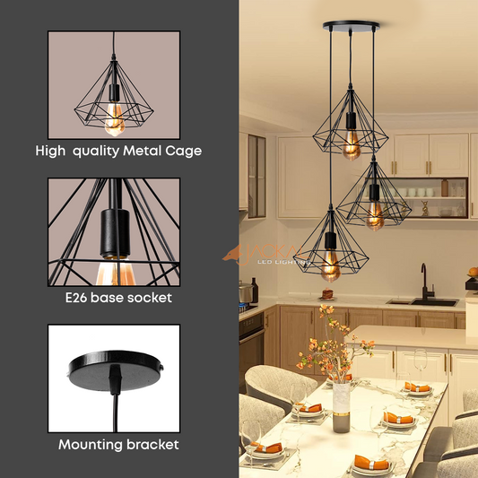 Cylinder Mesh Hanging Light, Pendant Light Hanging Ceiling Light Pack of 3