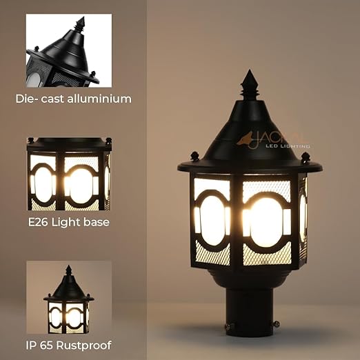 JACKAL® Waterproof Outdoor Gate Light Modern Style Rust Resistance, Garden Pillar Boundary Exterior Lamp Fixture (Bulb Included) (Modern, Antique, Metal, GATE Light, 1, LED Outdoor GATE Light)