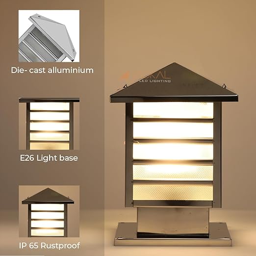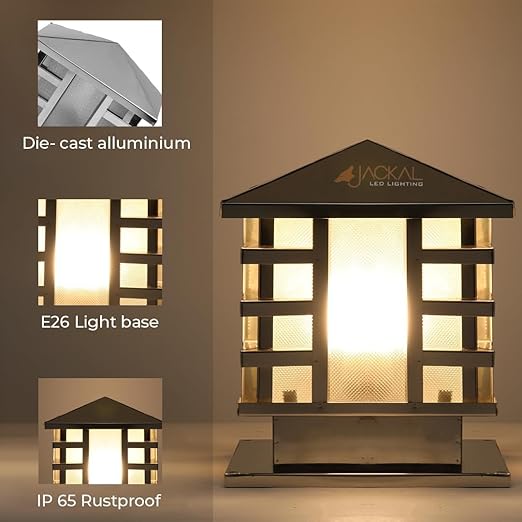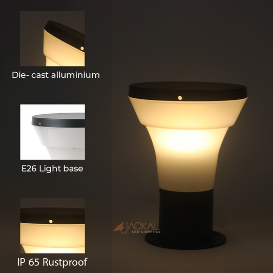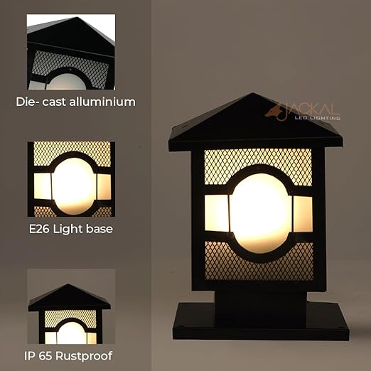 JACKAL® Waterproof Outdoor Gate Light Modern Style Rust Resistance, Garden Pillar Boundary Exterior Lamp Fixture - Bulb Included