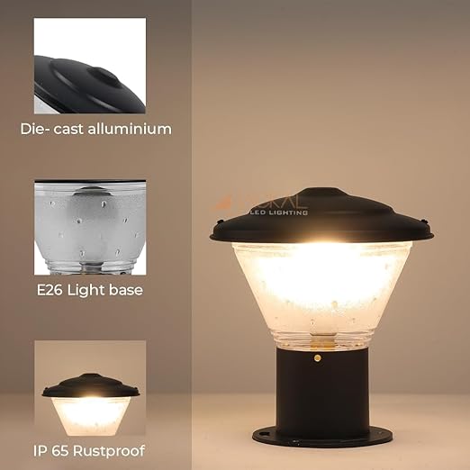 JACKAL® Waterproof Outdoor Gate Light Modern Style Rust Resistance, Garden Pillar Boundary Exterior Lamp Fixture (Bulb Included) Outdoor GATE Light