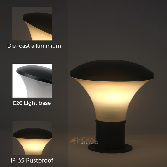 JACKAL® 25W Mushroom shaped Black Led bollard light |Outdoor Garden Gate Light