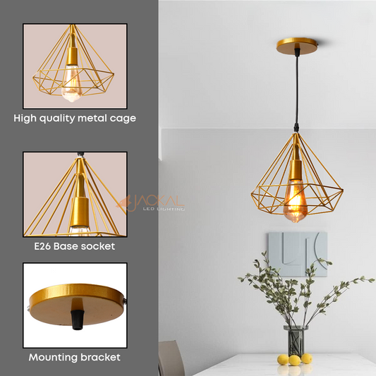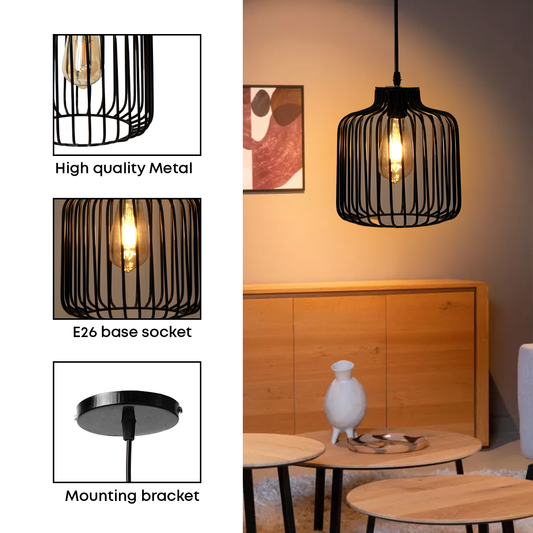 JACKAL Black Metal Wire Pendant Hanging Light, Pendant Light, Ceiling Light (with Bulb)