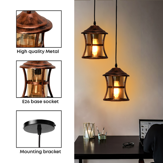 JACKAL® Lantern Hanging Copper Lamp with LED Bulb, Hanging Light