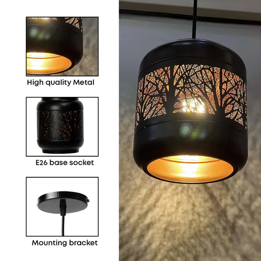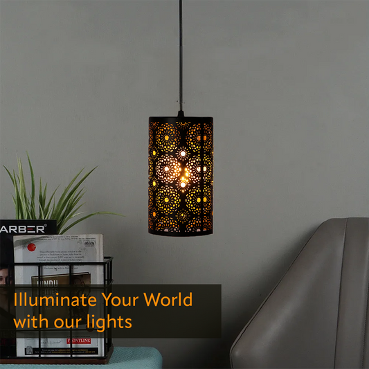 JACKAL Black Metal Hanging Light, Laser Cut Design Lamp Pendant Light, Ceiling Light (with Bulb)