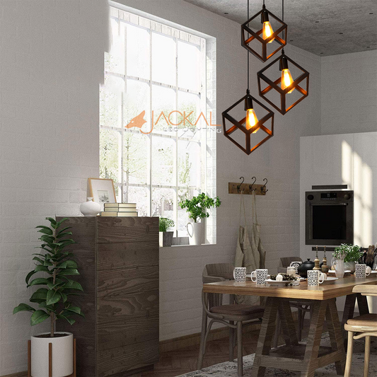 Metal 3 Set Vintage Cube Shape Pendant Light