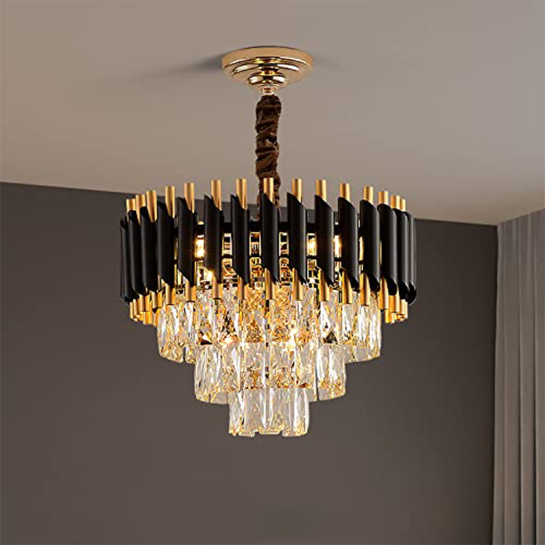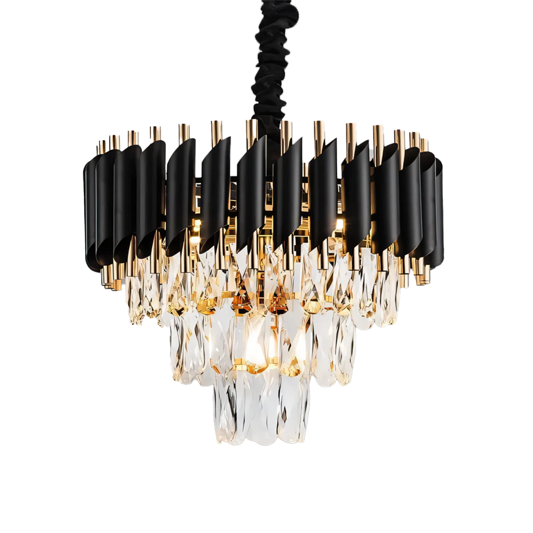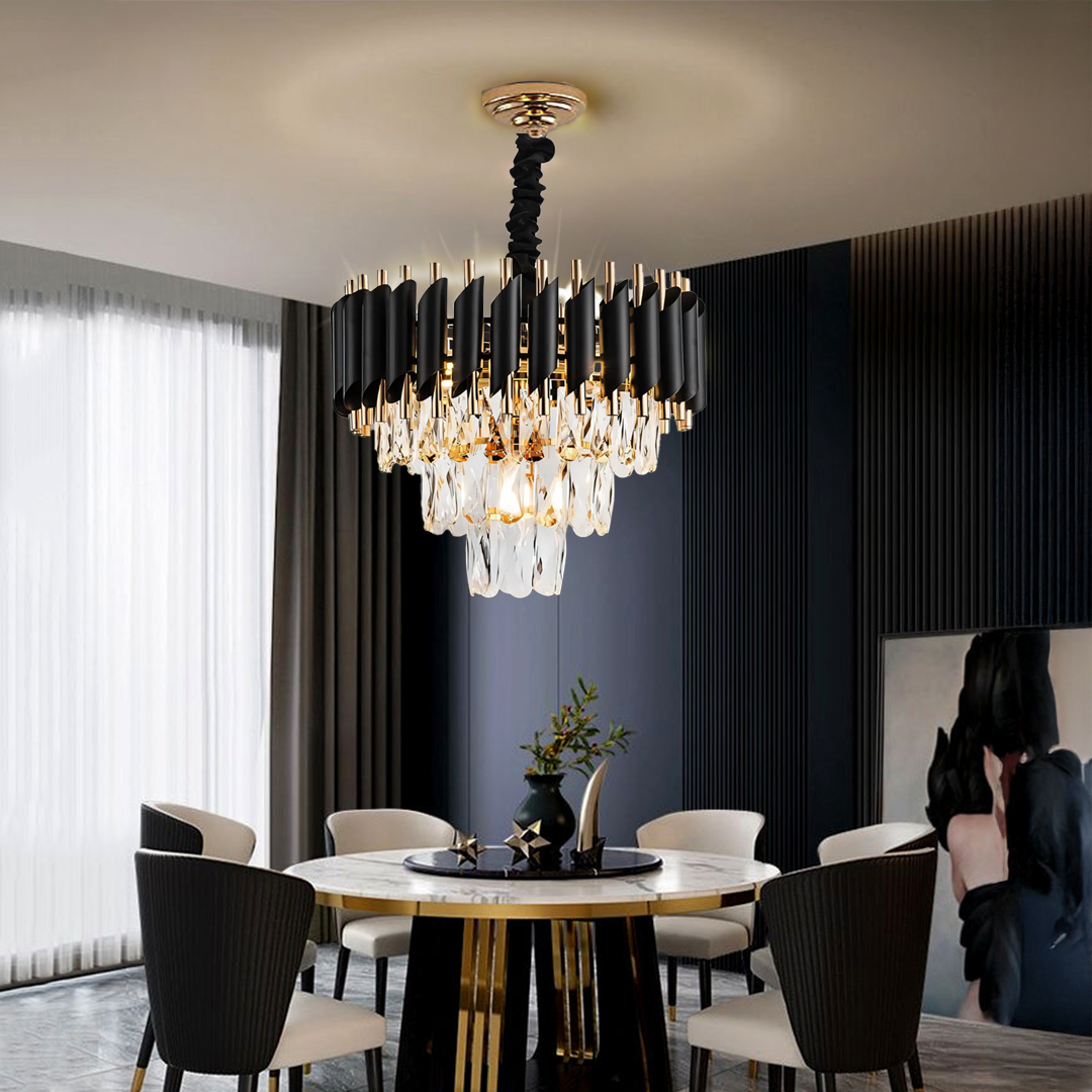 JACKAL Stainless Steel Black Mamba Round K9 Crystal Chandelier | Modern Chandelier Light Fixture for Hallway, Living Room, Hotel & Entryways - Warm White, Inbuilt LED Chip 12 Inch (300mm)